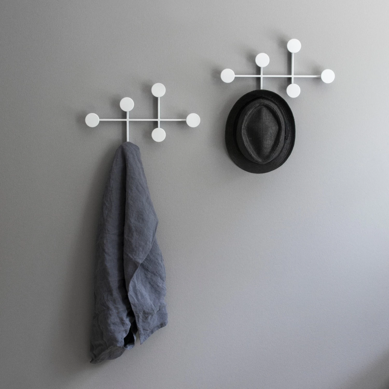 The coat hanger is a simple yet sophisticated hanging system for coats, clothes or accessories and is easily fixed to the wall, with all screws hidden to compliment the minimalistic and clean aesthetic.