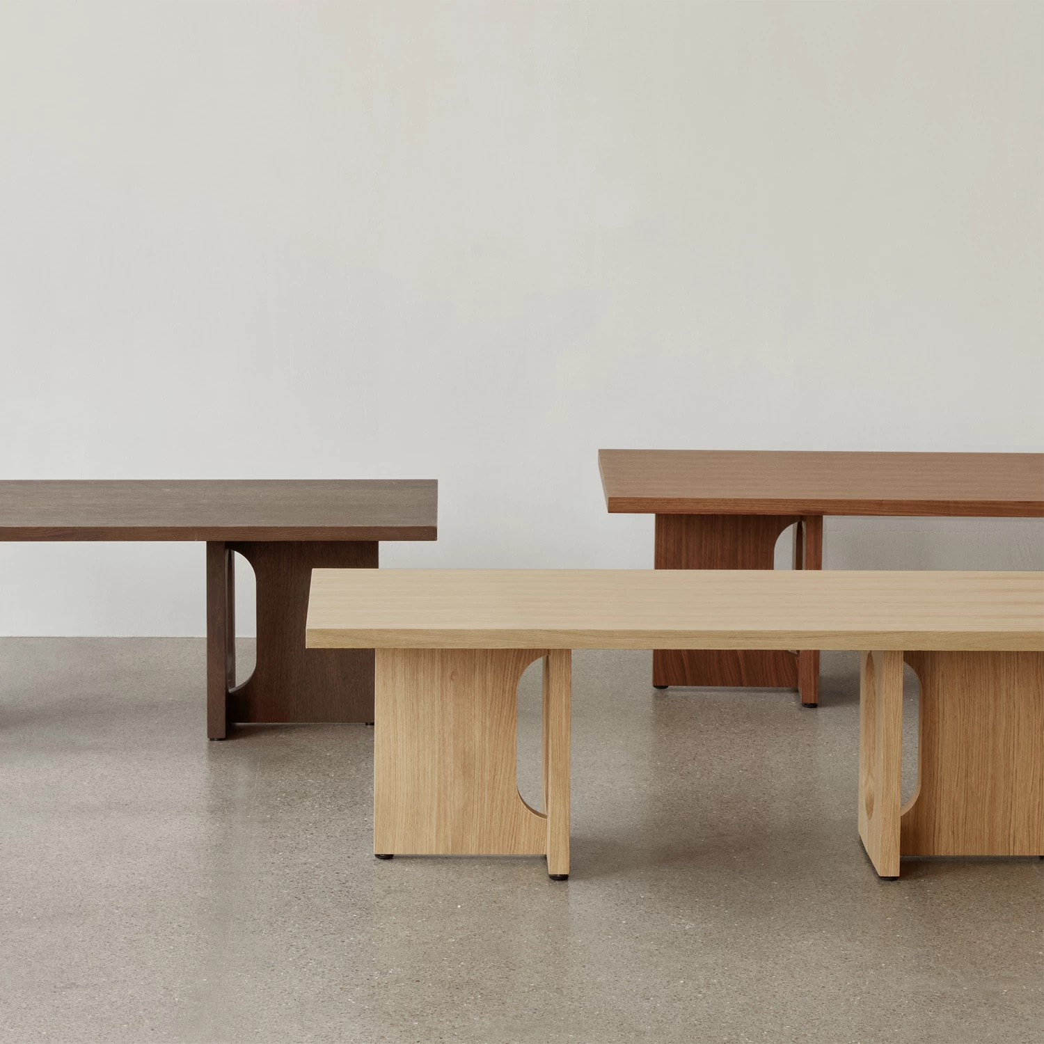 Originally developed by Norwegian architect and designer Danielle Siggerud as a modern and versatile table for MENU’s former showroom café, the Androgyne Collection profiles simple silhouettes and refined materials. Celebrating craftsmanship and wood, the Androgyne Lounge Table, Wood is now versioned in natural oak or dark stained oak or walnut, as well as with the option of a Kunis Breccia stone tabletop.