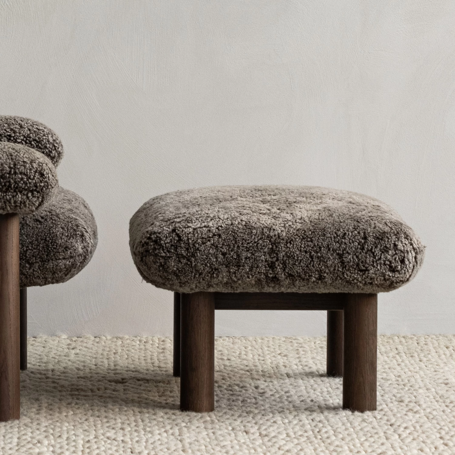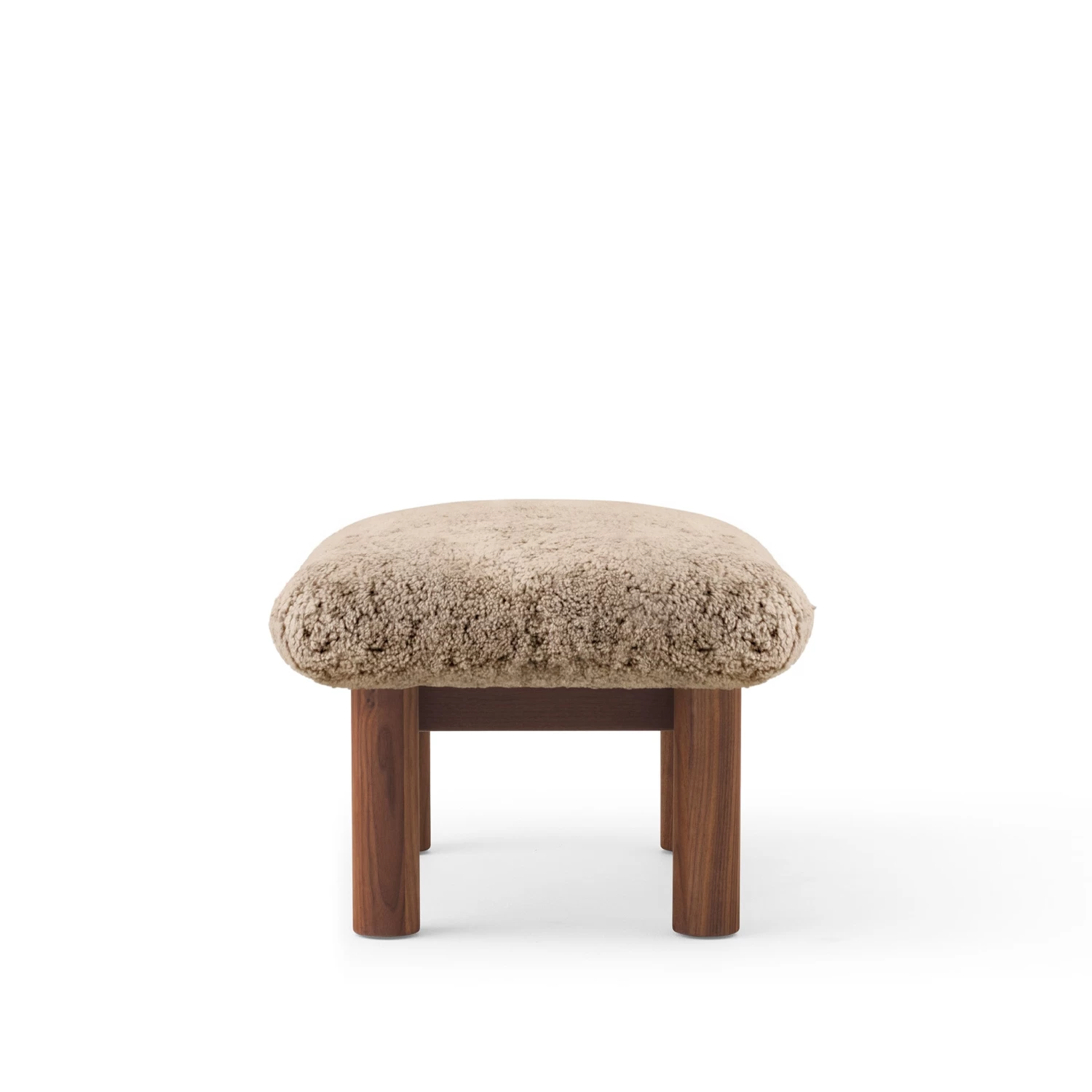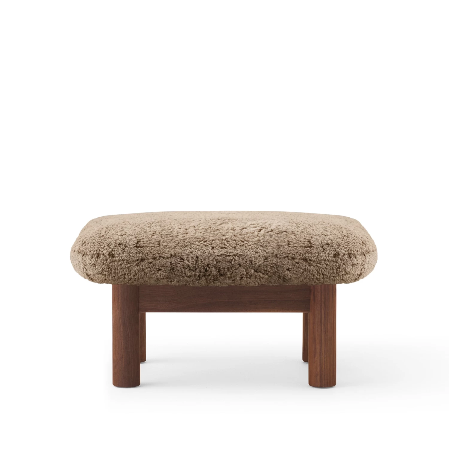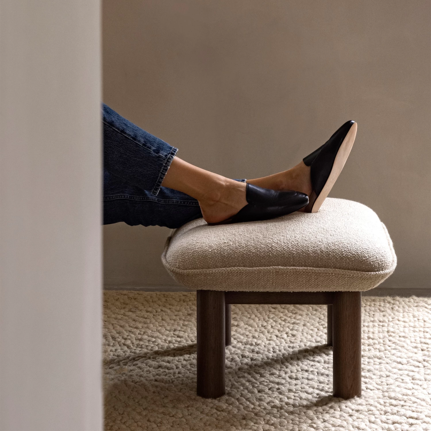 Designed for MENU by Anderssen & Voll, the solid wood Brasilia Ottoman fuses Scandinavian sensibilities with Brazilian Modernism. The four chunky legs hold an upholstered cushion that beyond its intended use as a footrest for the corresponding chair doubles as a side table for a tray or a seat for unexpected guests.