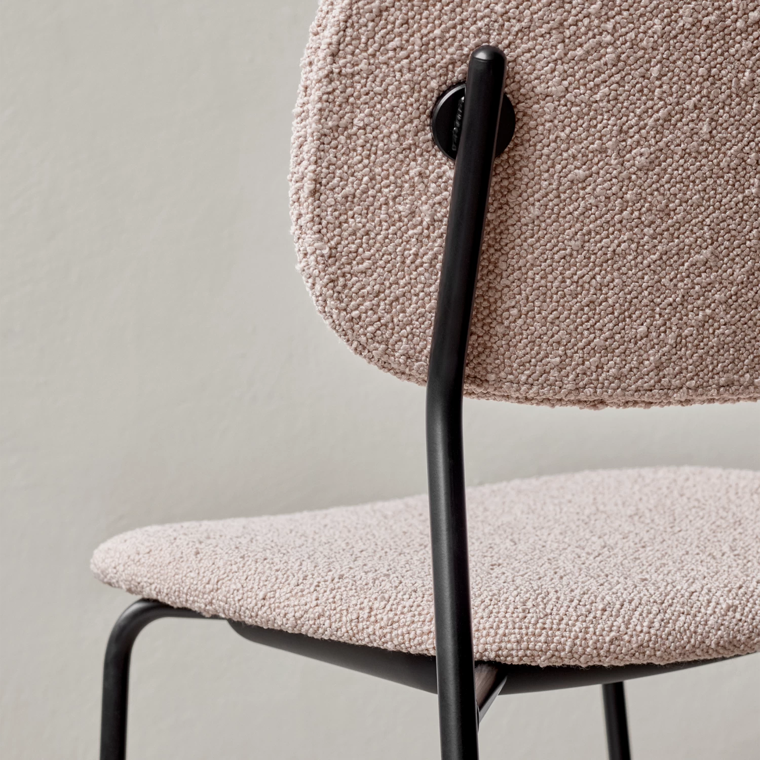 The Co Chair Collection pairs a lightweight, sleek profile with great seating comfort. The versatile design of the fully upholstered Co Chair is set on a black powder coated steel or chrome base.Â