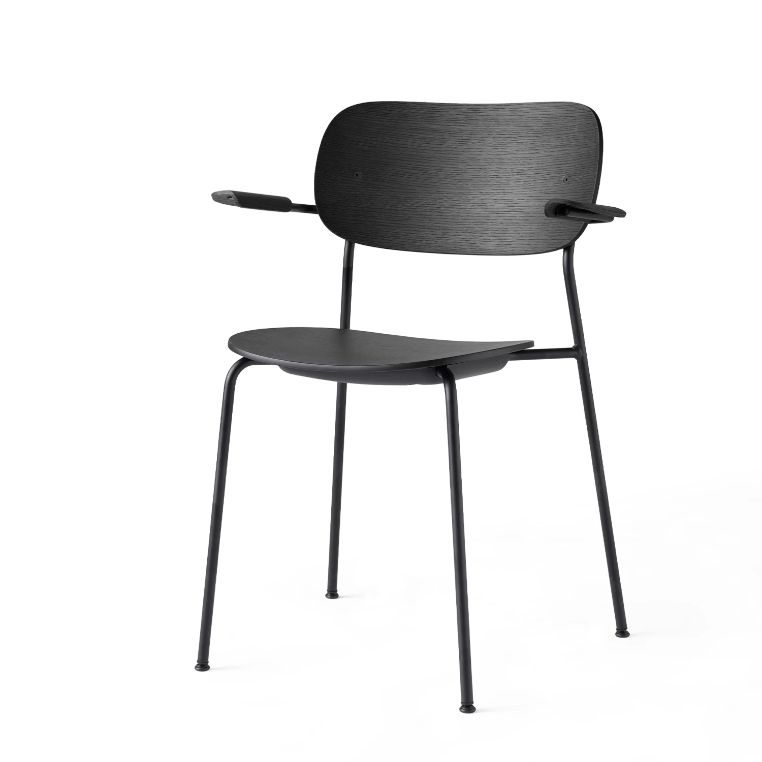 The Co Chair is stackable with up to 10 chairs, depending on whether and how they are upholstered. The chair is available with or without armrests.