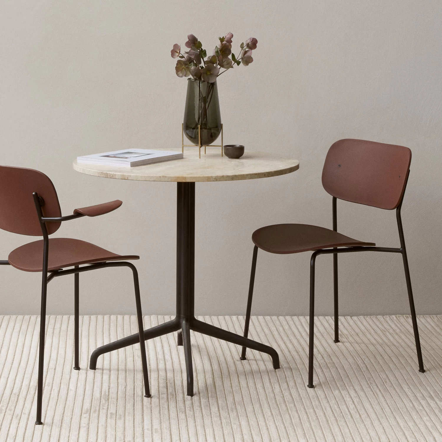 This multi-functional Co Dining Chair features a recycled plastic form utilised for the seat, back and armrests. Sourced within Europe, the material is recycled to reduce waste and the production of new plastic. The durable, matte-finish material works in harmony with the chair’s sleek frame.
