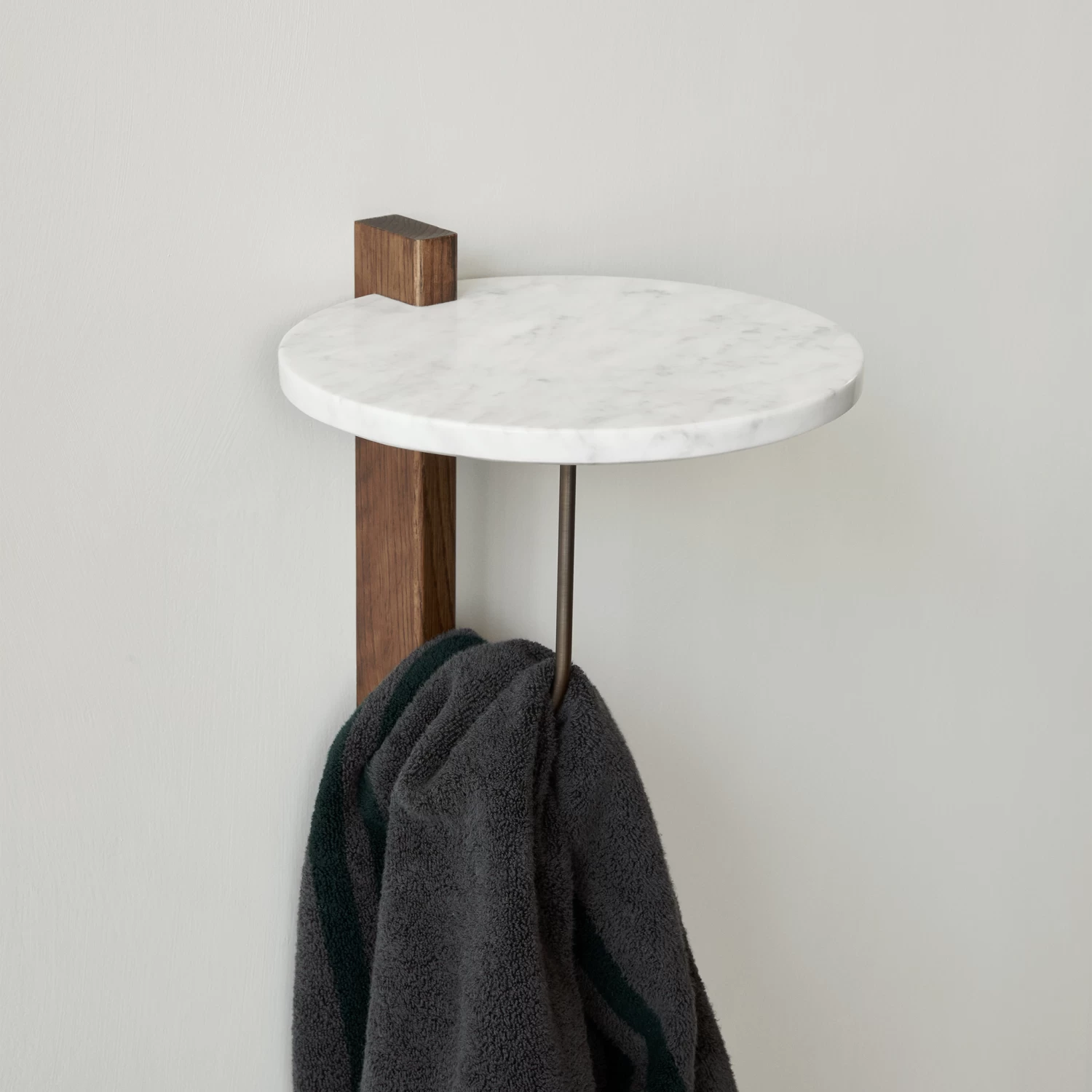 The modernist Corbel Shelf is a wall-hung podium that combines contrasting materials to arresting effect. The invention of design studio Krøyer-Sætter-Lassen, the versatile design in marble, oak and plated steel takes its name and design cues from architectural weight-bearing brackets traditionally made from stone or wood.