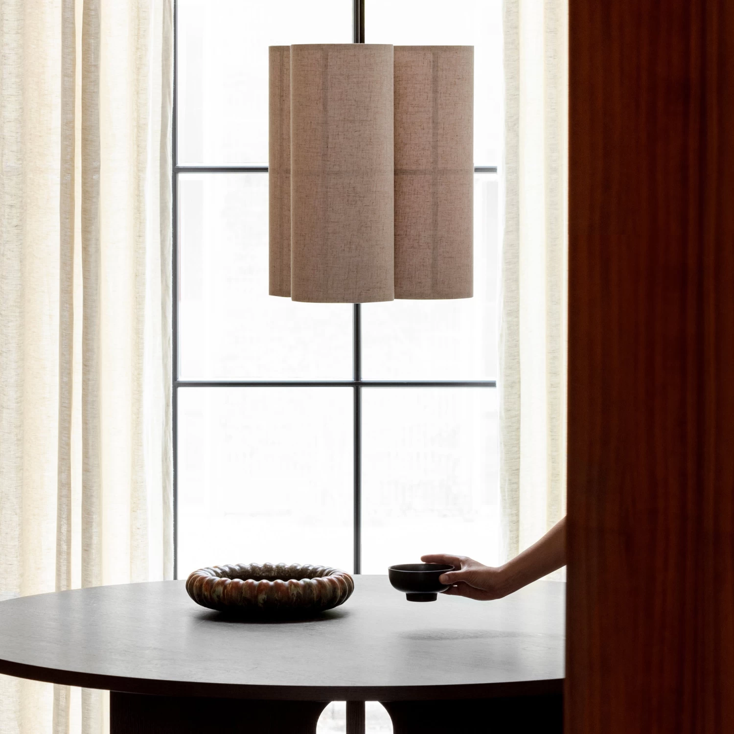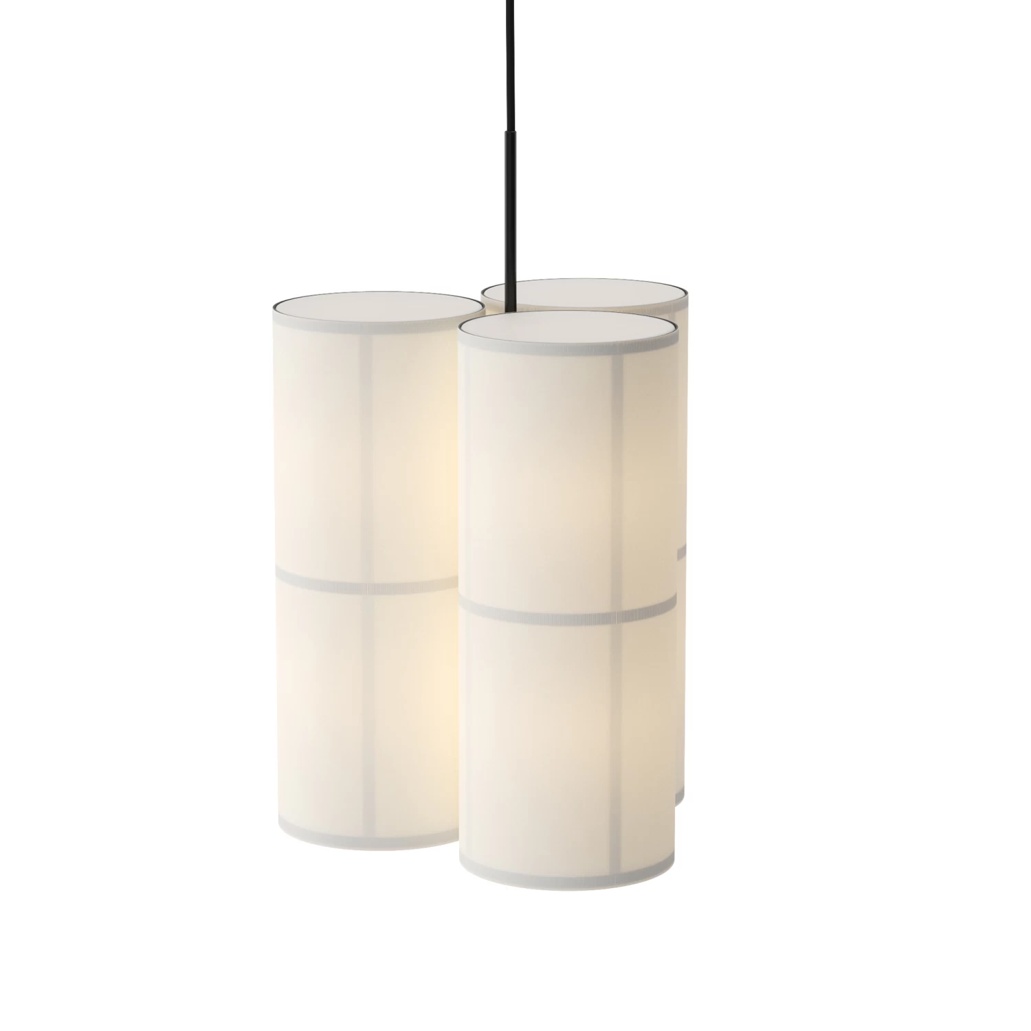 A trio of pendants suspended from a black textile cord create the collection’s cluster light, bringing the same sense of understated luxury and calm to interior spaces as the other designs in the collection.