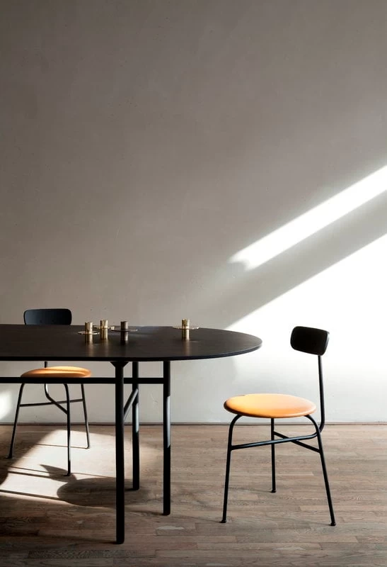 Menu’s classical Afteroom 4 chair is a tribute to functionalism and the Bauhaus style, where form always follows function. Designed and named by the design office Afteroom, Afteroom 4 chair has a well-thought design: the four legs, round details and elastic backrest make the chair practical without forgetting comfort. The contrast between wood, leather and metal brings an interesting edge to the chair and makes it a convenient and durable companion for dining, working and relaxing.