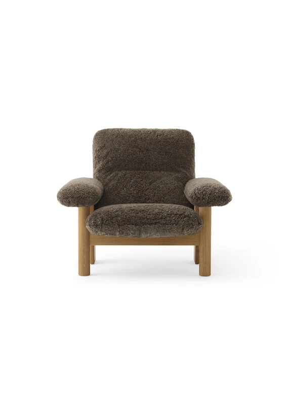 Menu’s Brasilia lounge chair delights with its organic feel and soft lines. Designed by Anderssen & Voll, the Brasilia lounge chair features a solid wood frame made with traditional joinery and generous, upholstered cushioning on the seat and armrests. The combination of rounded front legs and rectangular back legs gives the chair a nice geometric touch.Â