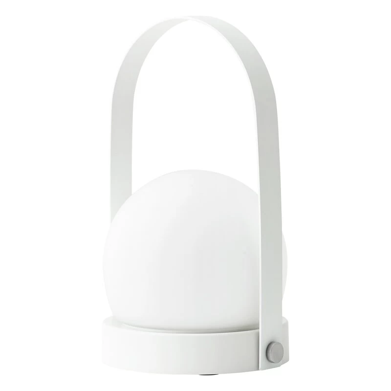 MENU’s Carrie table lamp infuses your home with a warm and cosy atmosphere – or like the Danish like to call it, “hygge”! Designed by Norm Architects, the luminaire comprises a round base in plastic, a white opal glass dome, and a sleek, arched handle that allows the lamp to be carried with you anywhere you go. The dimmable lamp is rechargeable and cordless, so it can be placed on the bedside table or windowsill as well as used as a portable source of illumination for summer houses, picnics, and evening walks on the beach. Thanks to the IP44 rating, the luminaire may also be used outdoors on the balcony, patio, or garden.