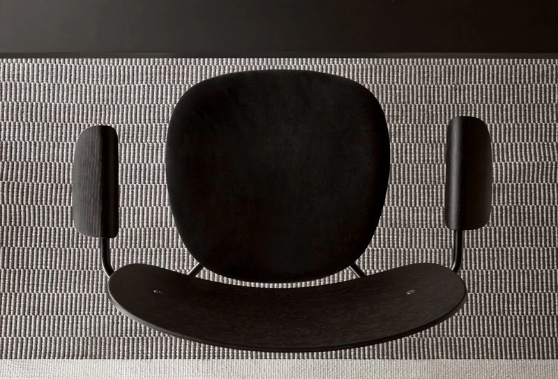 Menu’s Co Chair is characterized by a balanced contrast between a sleek steel tube frame and softly curved wooden seat. The backrest has been slightly tilted for optimal seating comfort and support, and the oak-veneered armrests perfect the design.