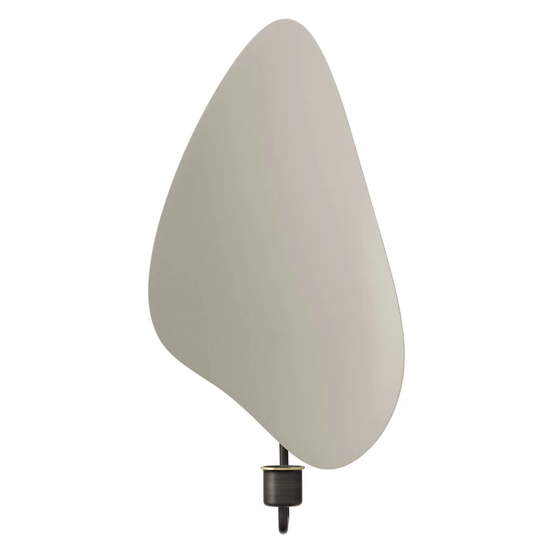 Designed by Krøyer-Sætter-Lassen, the wall sconce comprises a bronzed brass base and a backplate painted in a soothing warm grey hue. The distinctive, delightfully abstract plate not only guides the candle’s light but also catches the eye even when the candle is not lit, making the elegant yet playful Flambeau, “torch”, a captivating addition to any interior.