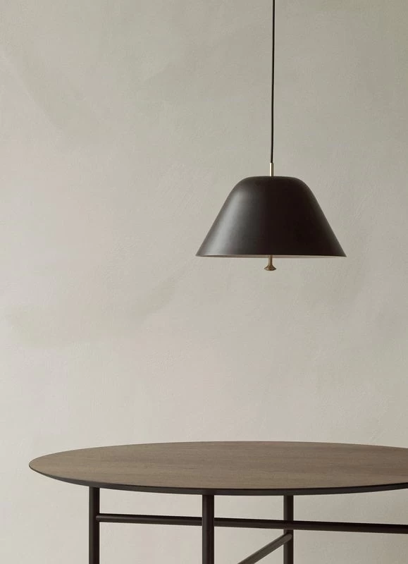 Menu’s Levitate pendant boasts a simple yet stylish look complete with an elegant and distinctive detail – a decorative brass knob protruding from the bottom of the shade. The luminaire’s aluminium shade also hides a glass diffuser, which makes the light emitted by Levitate pleasantly warm and soft. The bell-shaped form, decorative brass details and gentle light make the Levitate pendant suitable for a wide range of spaces and purposes, both as a single lamp and in a row or group of several luminaires. The Levitate pendant light is designed by Afteroom Studio.
