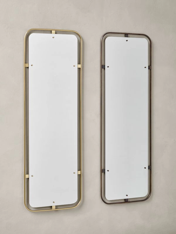 Menu’s Nimbus mirror, designed by Krøyer-Sætter-Lassen, was created based on the Danish design duo’s idea of a framed mirror whose frame would not distract from the mirror itself. The simple and beautiful Nimbus is surrounded by a delicate, halo-like brass frame attached to the mirror with six barely noticeable brass screws. The mirror’s name, Nimbus, was inspired by Greek mythology: the word nimbus referred to the glowing halo or corona surrounding deities.