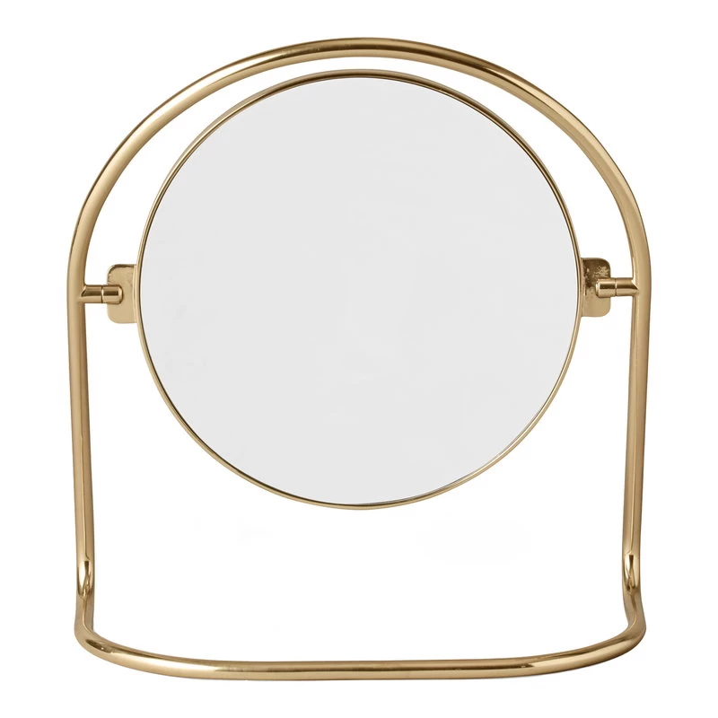 Menu’s Nimbus table mirror, designed by Krøyer-Sætter-Lassen, was created based on the Danish design duo’s idea of a framed mirror whose frame would not distract from the mirror itself. The simple and beautiful Nimbus is surrounded by a delicate, halo-like brass frame attached to the sleek base with hinges. The mirror’s name, Nimbus, was inspired by Greek mythology: the word nimbus referred to the glowing halo or corona surrounding deities.