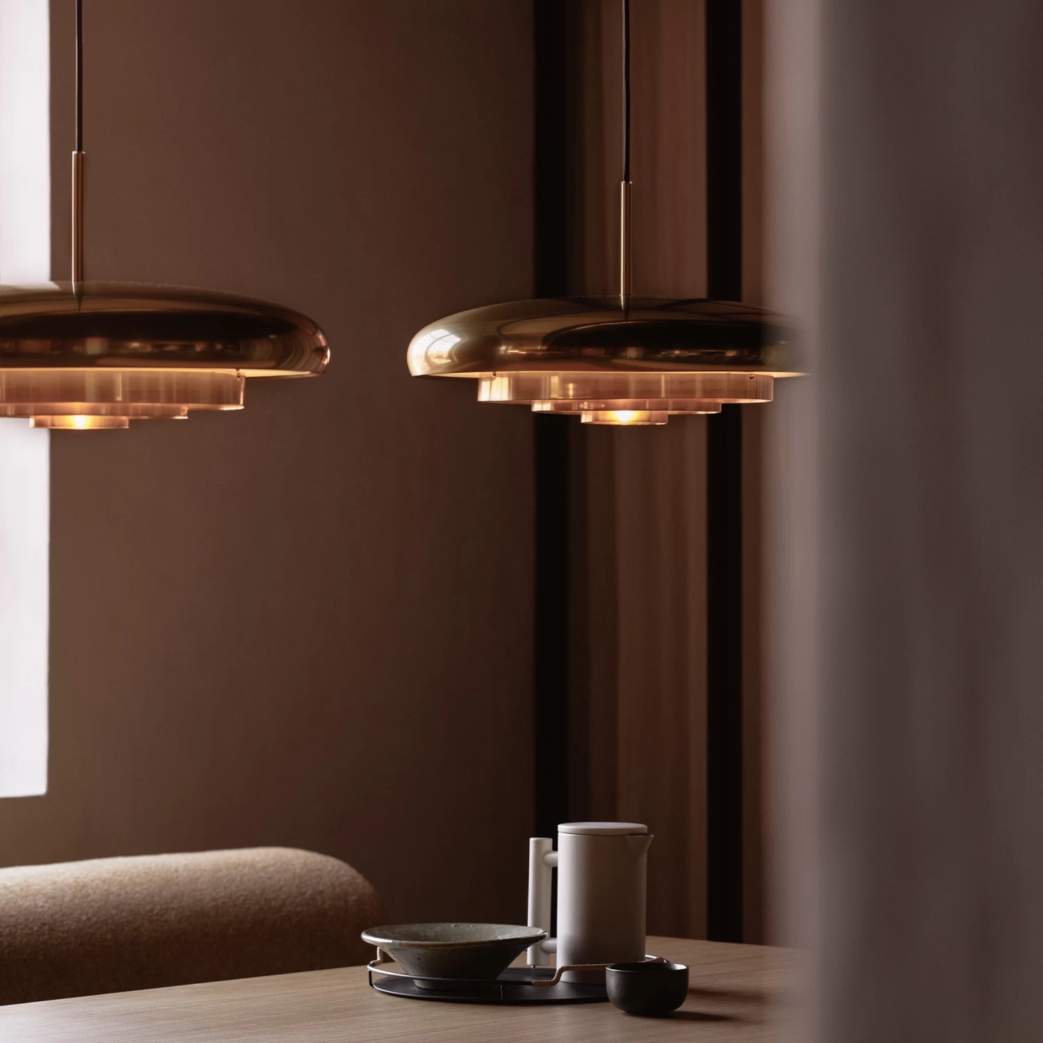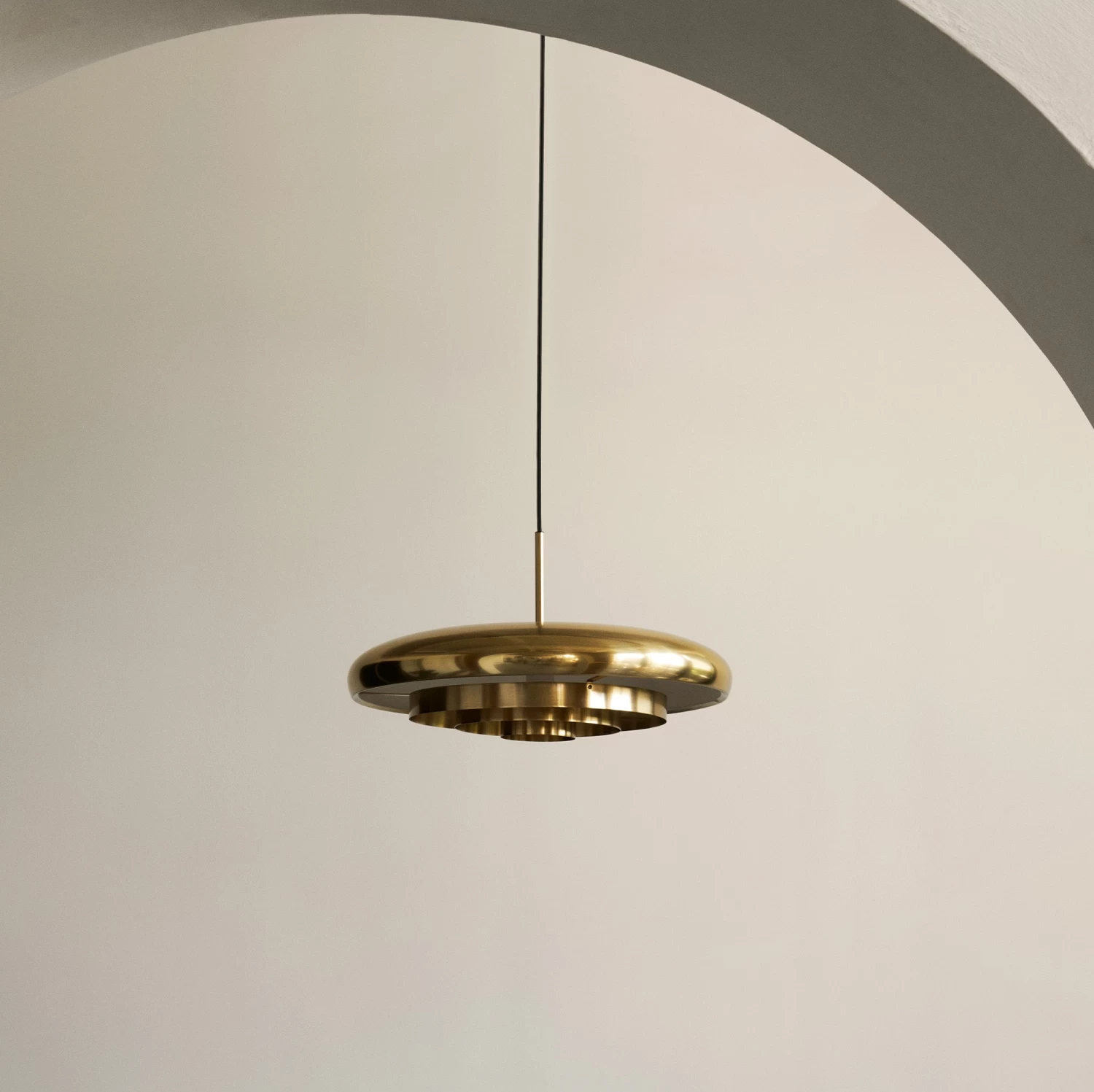 Designed in the 1950s by Alf Svensson and Yngvar Sandström, Resonant is as relevant today as ever. The mid-century pendant lamp is both striking and simple, shaped from polished brass into four concentric shades that direct glare-free light downwards. Well suited to any space, its name alludes to a visual interplay between light and sound, reflecting off the shiny surface and reverberating across a room.