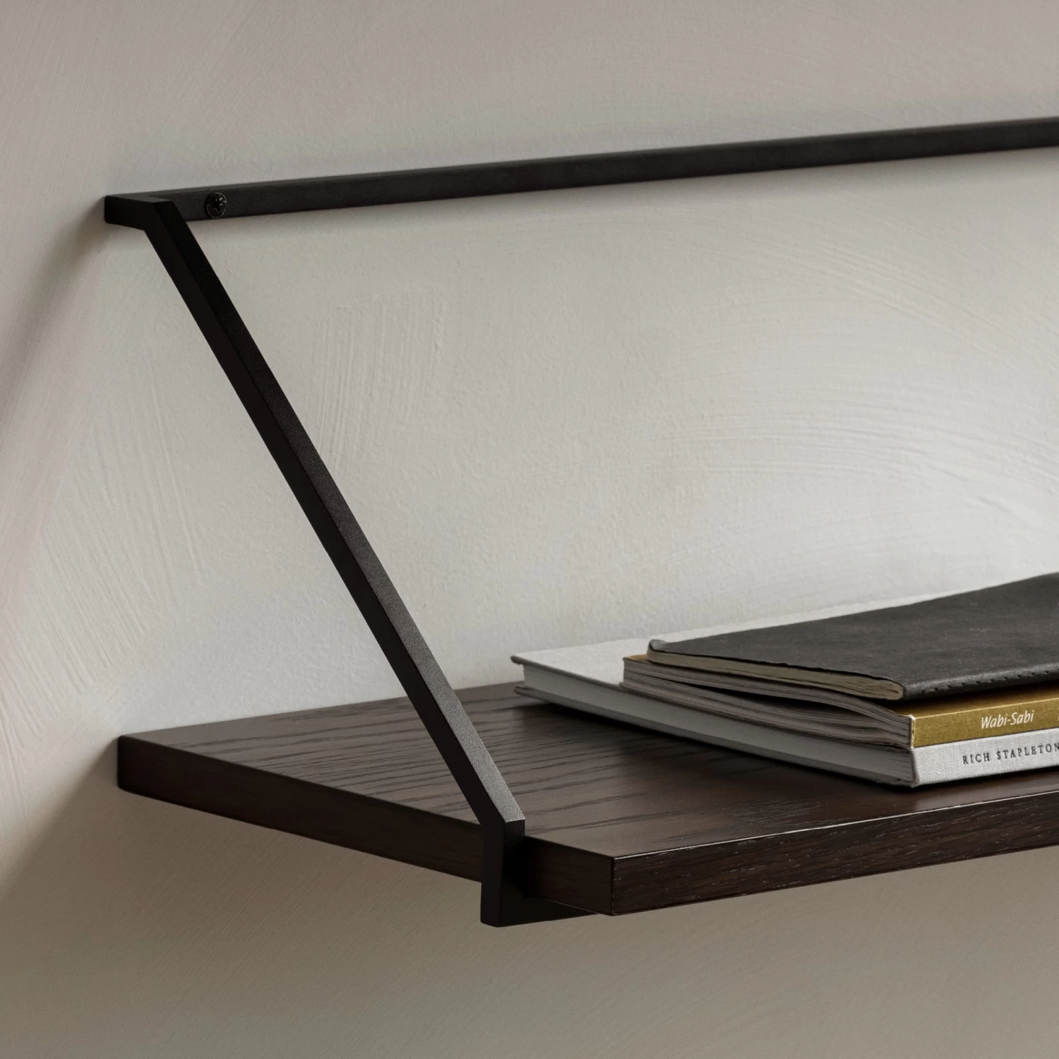 Tactile wood and lightweight metal create a minimalist expression on the new Rail Shelf. The neat piece in natural or stained oak fits into spaces small or large.