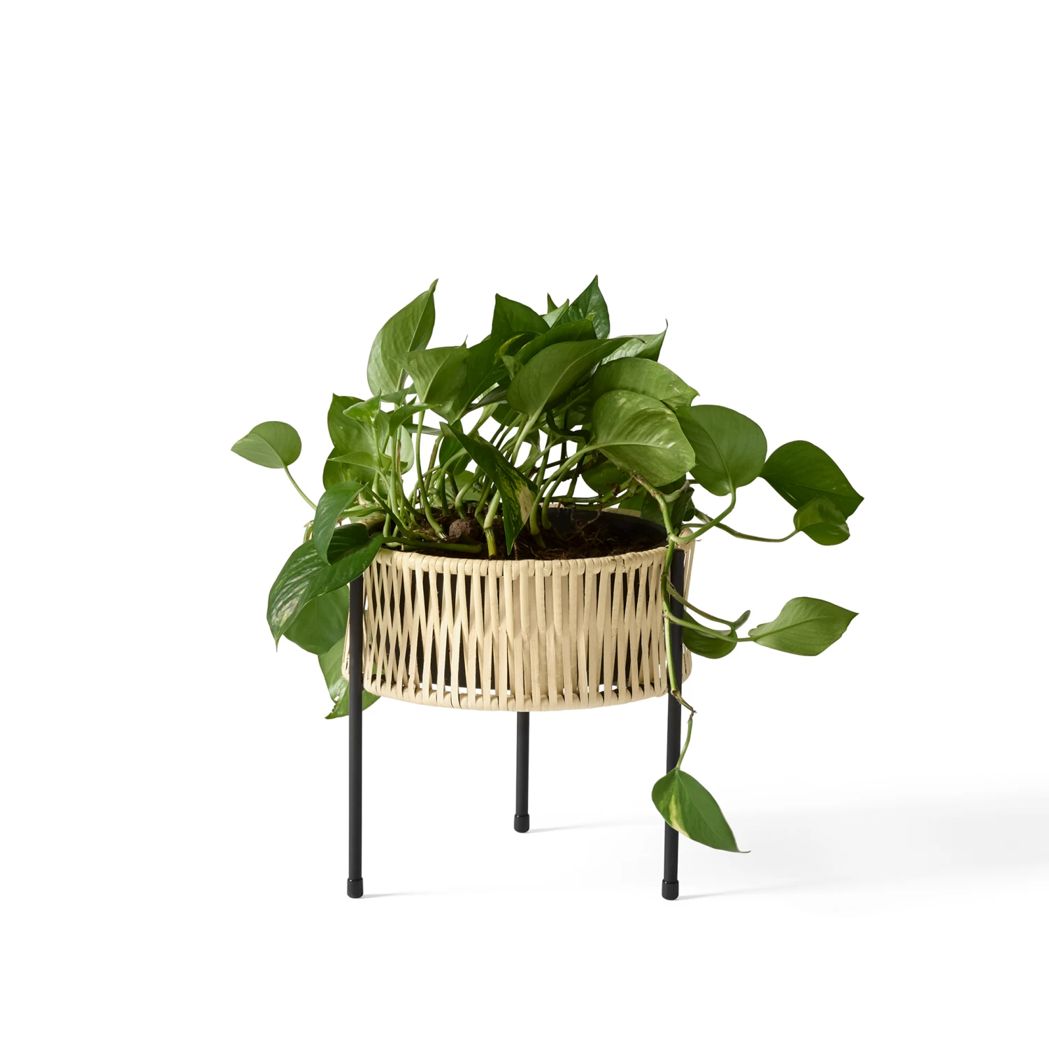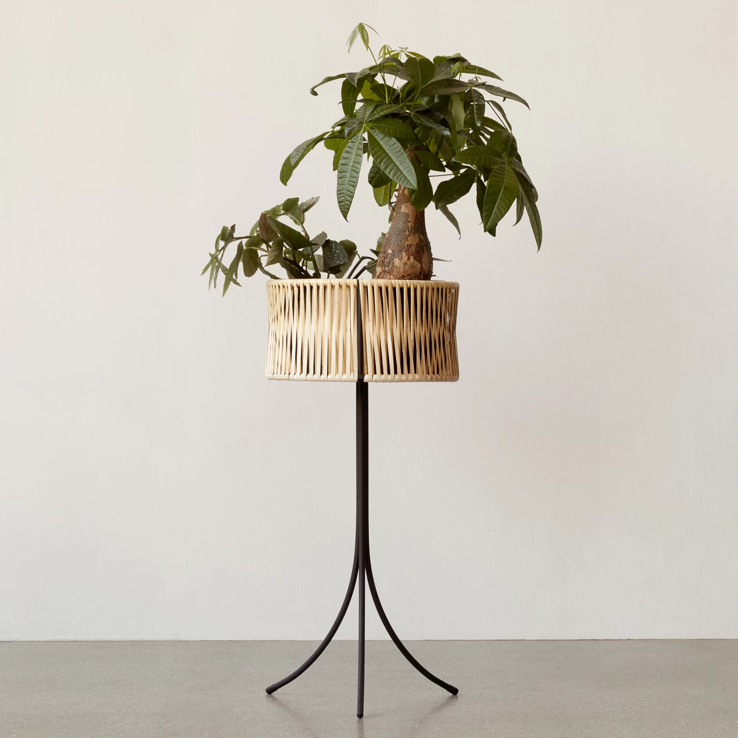 Offered in three different sizes, the Umanoff Planter marries sleek powder coated steel lines with curved handwoven rattan for a natural contrast. Designed in 1961 by the late Arthur Umanoff, a master of mid-century modern, the elevated planter is suitable for both indoor and outdoor use.